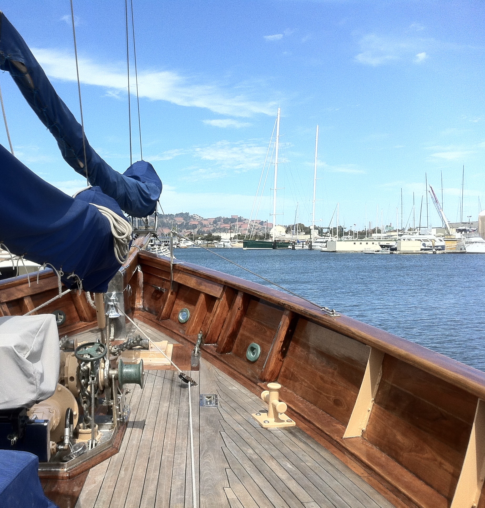 Point Richmond, CA: The Chevron Refinery, Pt. San Pablo Y.C., KKMI & Svendsen’s-Bay Ship Boatyards from the Sugar Docks on the deck of “Eros.”