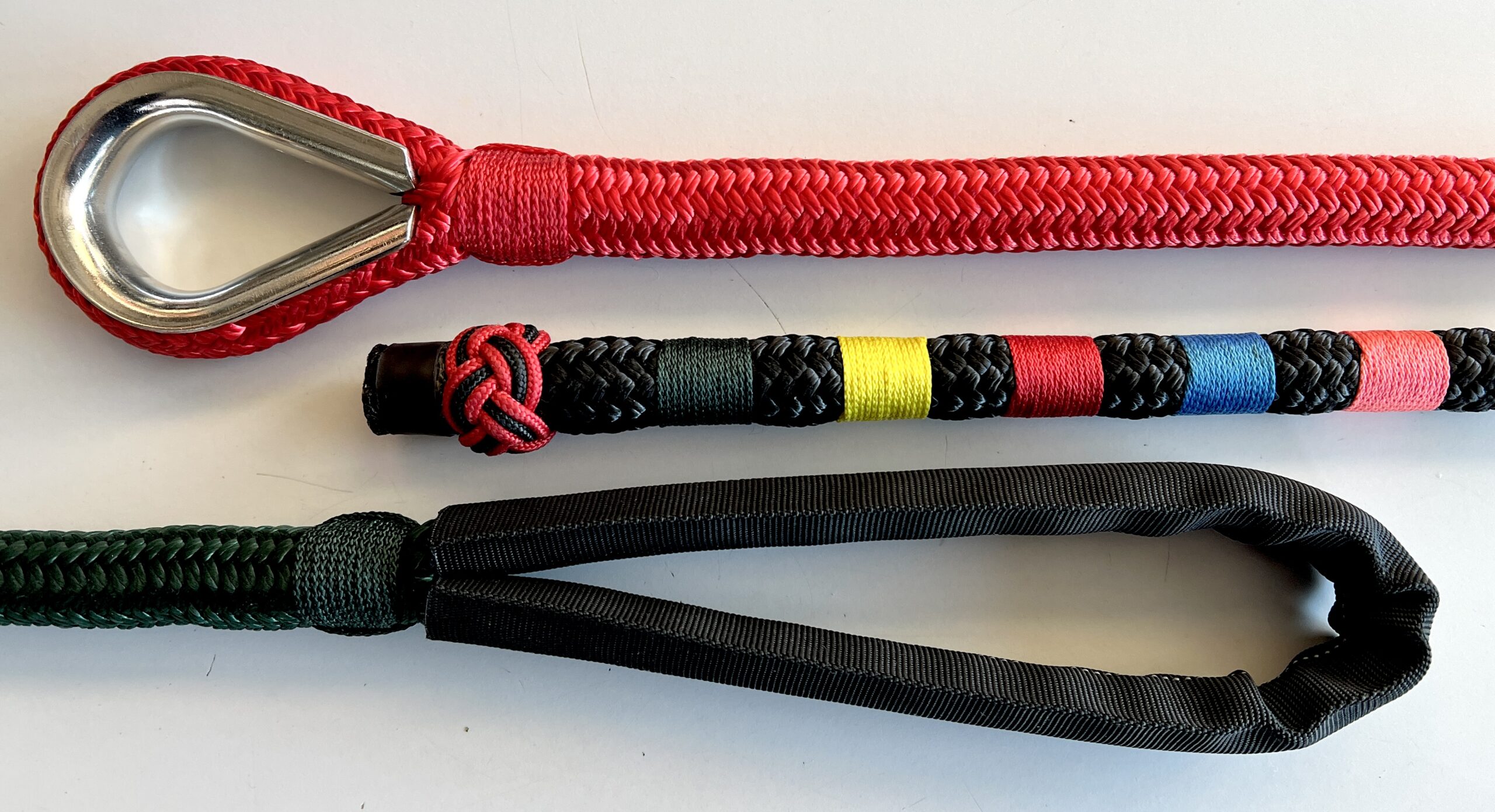 There are two types of rope: Stretchy (nylon) and non-stretchy (polyester, etc.). They both serve very different and important functions: