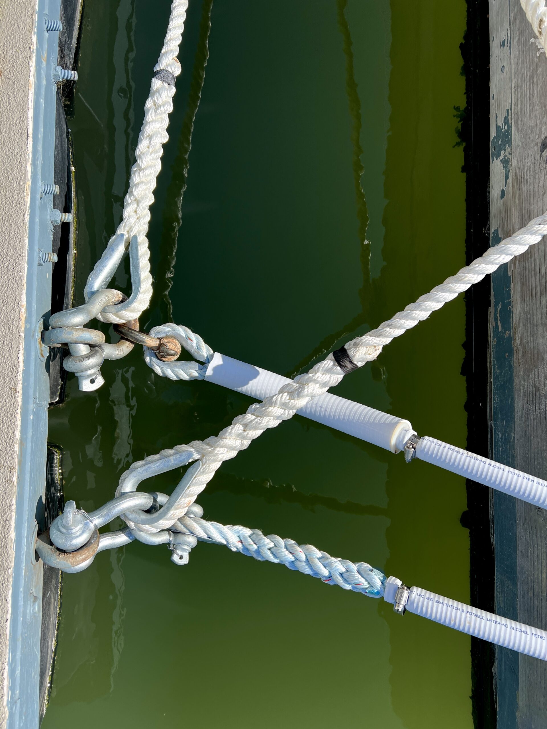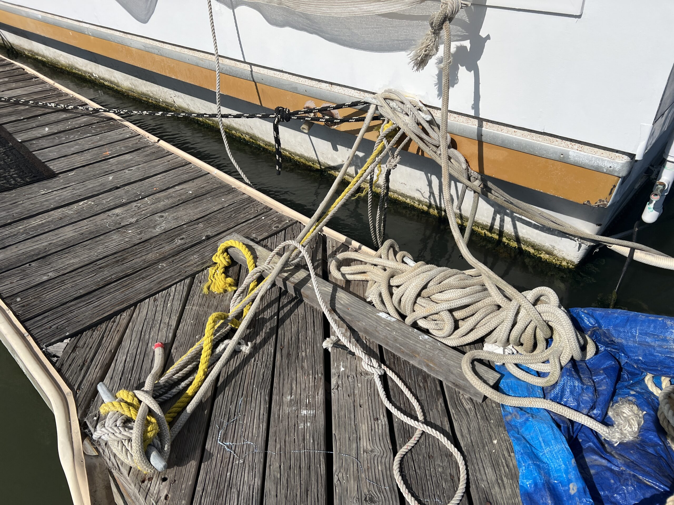 So: It is not a good idea to use repurposed non-stretchy sail lines for dock lines. (Unless you incorporate elastic rubber or metal spring “snubbers.”)