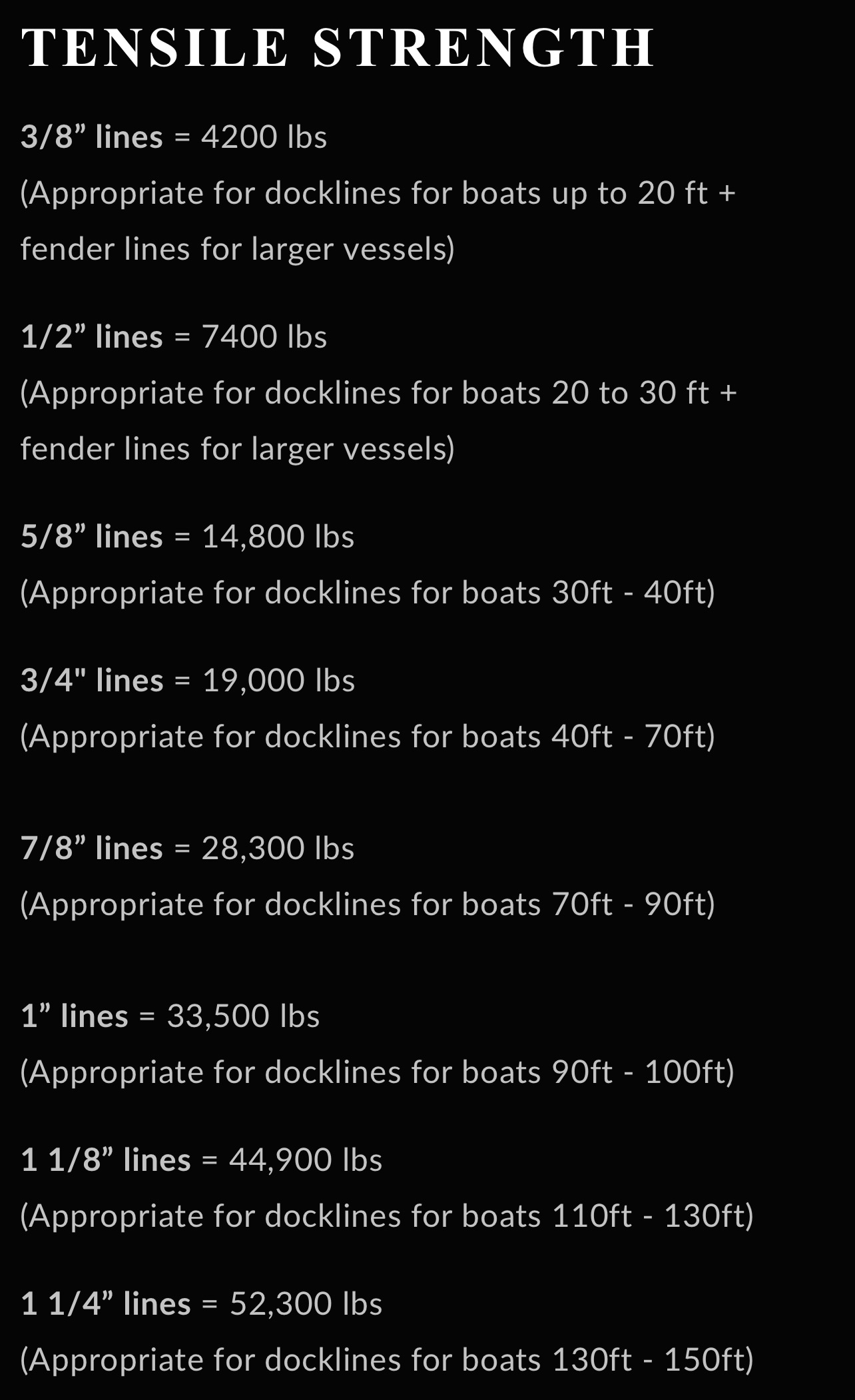 BREAKING STRENGTH CHART:
