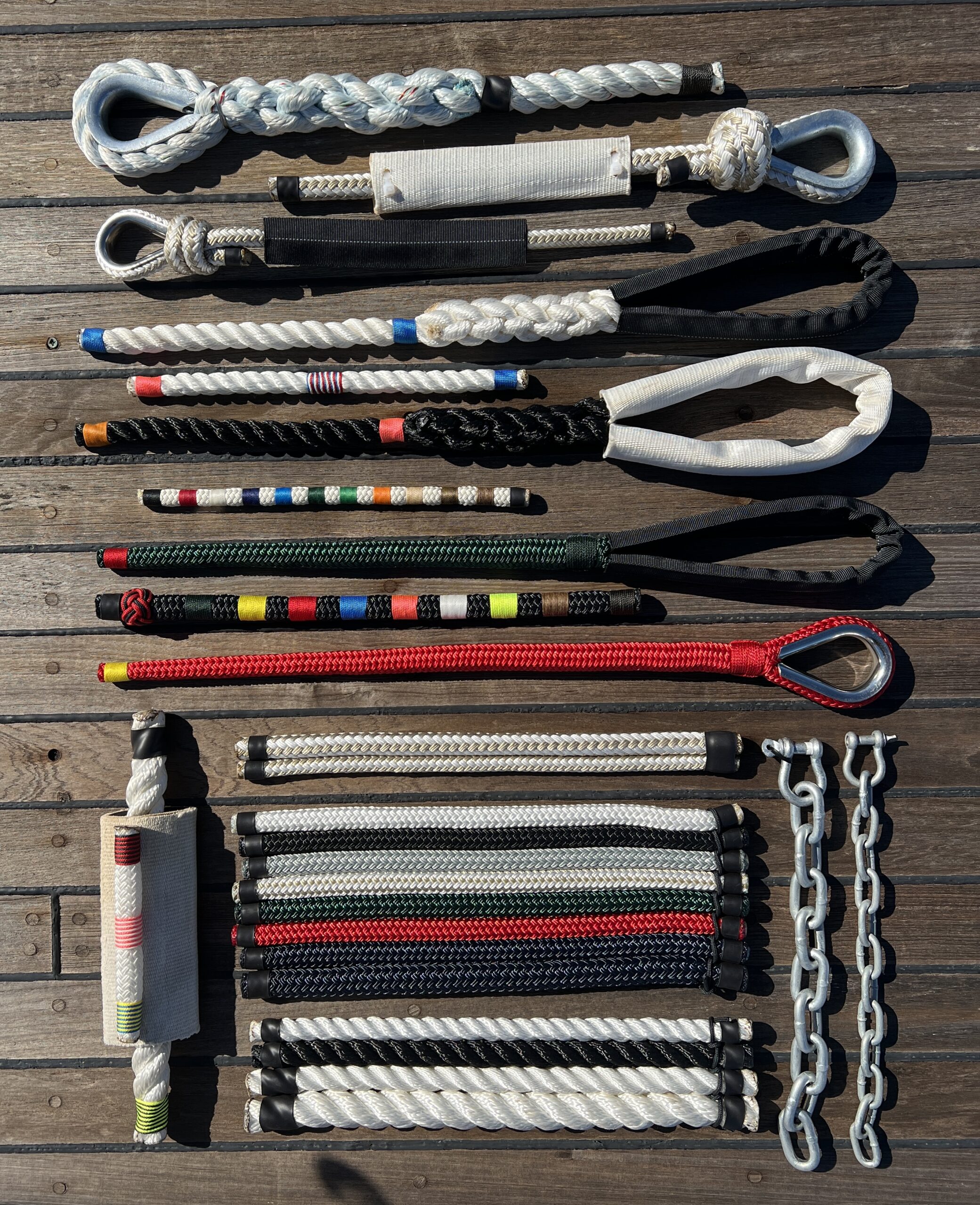 At Marine Rope Service, we specialize in producing premium custom dock lines – both permanent and travel – designed with quality chafe gear and line end whippings in many colors and all styles, including chain-to-cleat. Our dock lines are long lasting, ensure your boat stays secure, provide excellent value, and they look great!